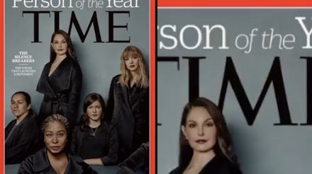 The cover of the magazine included some of the more famous faces who had spoken out about their own experiences of sexual harassment and assault, as well as one woman whose face is not visible — a representation, Felsenthal said, of the many less-public women who have their own #MeToo stories.