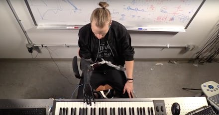 Watch this high tech prosthetic arm help a musician play the piano and drums again