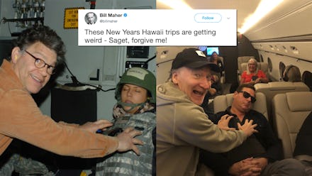 “These New Years Hawaii trips are getting weird,” Maher tweeted. “Saget, forgive me!”