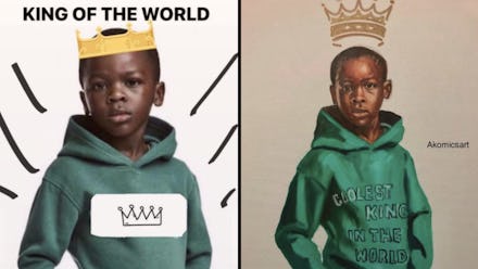 It started with recording artist Chris Classic, who doctored a photo of the sweatshirt with the text erased, replaced by an image of a crown (a gold crown was also placed atop the young man’s head). “I made this because I don’t wanna see this young King’s face anymore with the shirt he was hired to wear by H&M. ... I just hope he gets to see this one or any like it that celebrate him,” he said.