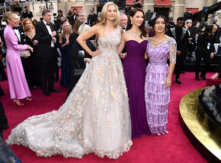 Politics has found its way in to nearly every single major red carpet this season. The Golden Globes sparked not only the all-black dress movement but popularized those Time’s Up pins, which have popped up on major red carpets since. The Grammys had those white roses. The BAFTAs followed the Golden Globes’ lead and encouraged everyone to wear all black in support of Time’s Up and its fight against sexual harassment in the workplace.