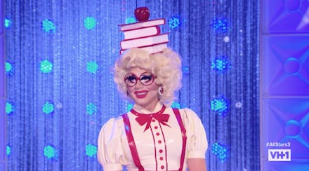 The cartoonish stack of books on her head, punctuated with a perfectly balanced apple, made Trixie look like a strawberry shortcake come to life. Also, by including the books, Trixie was the only queen who successfully integrated the double entendre of red/read into her outfit. We love a queen who does her homework.