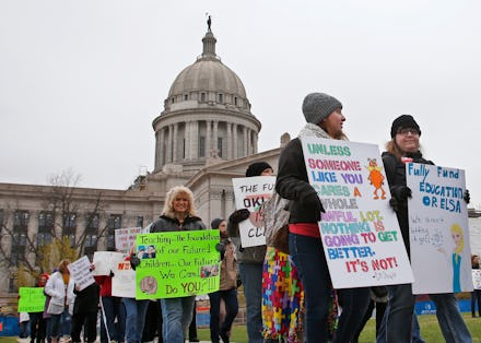 The West Virginia strike was the first in what’s become a streak of teacher-led action. Educators in Jersey City, New Jersey have led their own walkouts, and teachers in San Diego, California, threatened a mid-April strike. Nowhere has the trend gained more momentum, however, than in some of the country’s reddest states.