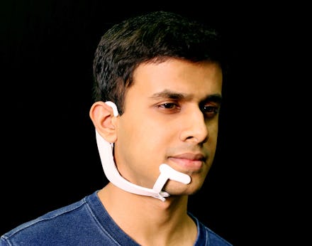 Using bone conduction, the AlterEgo headset sends subtle vibrations through the bones of your face that results in your inner ear receiving sound. This method of transmitting sound allows for wearers to hear the device without putting anything directly in their ear. Devices like Google Glass have done the same in the past.