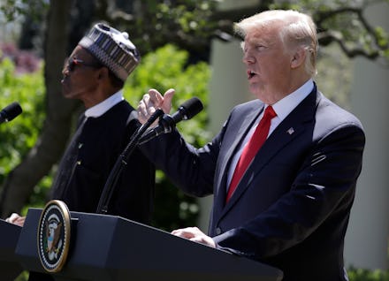 Trump addressed the alleged remark during a joint news conference with Nigerian President Muhammadu Buhari, who on Monday became the first leader of a sub-Saharan African nation to visit the White House during Trump’s presidency.