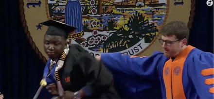 According to video documentation and graduate accounts from Saturday, the marshal physically rushed multiple black students along when they began celebrating onstage after their names were called. A full video recording of the ceremony can be viewed in an archived livestream on the University of Florida’s website.