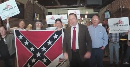 Trump’s praise of Stewart is far different from other Republicans, who lament the fact that Stewart won and have condemned Stewart’s embrace of Confederate symbols.