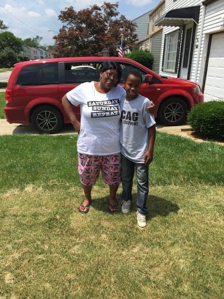 Twelve-year-old Reggie Fields, CEO of Mr. Reggie’s Lawn Cutting Service, was among the kids invited to an Independence Day party and barbecue hosted by Lucille Holt-Colden, the black Maple Heights mother and grandmother who initially hired Fields to mow her lawn June 23.