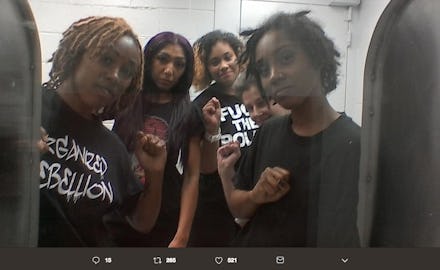 Lelani Russell, 25; Miracle Freeman, 29; Michael Lowe, 38; Dion Williams, 29; Stephanie Briant, 29; Davante Peters, 25; Darryl Burnham, 31; Melissa Perry, 33; and Arminta “Cleo” Jeffries, 25, were handcuffed outside AT&T Stadium in Arlington, Texas, and taken to jail, according to local reports and witnesses.