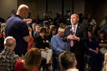 “Four months after my wife gave birth, I was diagnosed with ALS,” Barkan says in the ad. “I was shocked when Congress passed the tax bill that would take away my health care to fund tax cuts for billionaires.” The spot also features footage from a town hall in May 2017 in which angry constituents yelled at MacArthur for his repeal efforts. “Tom MacArthur betrayed my family and yours,” Barkan says. “On Nov. 6, let’s send him home.”