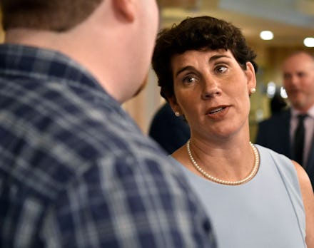 “I’m Amy McGrath. I played soccer at the Naval Academy, so I can handle cheap shots,” McGrath says in an ad, in which she’s playing goalie in a soccer net. “Andy Barr says I’m against middle class tax cuts? Wrong — just his tax cuts for those at the top. He says I’m for open borders? That’s ridiculous. And he keeps saying Nancy Pelosi. She didn’t even want me to run. Mr. Barr, I was a registered independent, married a Republican and you’re the one who’s doubling the national debt. I approve this message. Congressman, is that all you’ve got?”