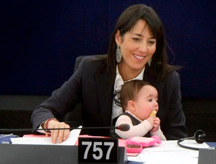 Meet Licia Ronzulli, a 38-year-old member of the European Parliament who has been occasionally bringing her daughter Vittoria along to meetings. In November, Vittoria accompanied the elder Ronzulli to a vote in Strasbourg. According to her mother, "I have been bringing her along because I want to show the difficulties faced by a woman who works and also a mother."