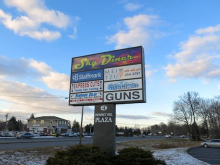 Riverview Sales sits in a shopping center in East Winsdor, Connecticut, off of I-95, near the border of Massachusetts. It's casually situated next to Sky Diner, a "family hair cutting" shop, and a sushi restaurant. Its sign is unmistakable: "GUNS."