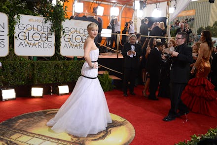 The actress is nominated tonight for Best Supporting Actress for her role in American Hustle. Last year Lawrence famously won for her role in Silver Linings Playbook, she of course also went on to win the Oscar.