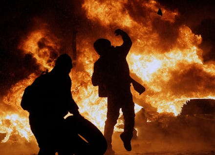 Why is everyone protesting? Ukraine’s weeks-long Euromaidan protests, which began in November in response to President Viktor Yanukovych’s decision to back away from an EU deal, were reignited over the weekend after the Ukranian government passed stringent new laws curbing citizens’ rights of speech and association. The new rules forbid protesters from protecting themselves with helmets and face masks, ban the erection of tents and barricades, and create stringent new libel restrictions. Penalties for the new crimes range from 15 days’ detention to a year’s hard labor to 15 years in prison.