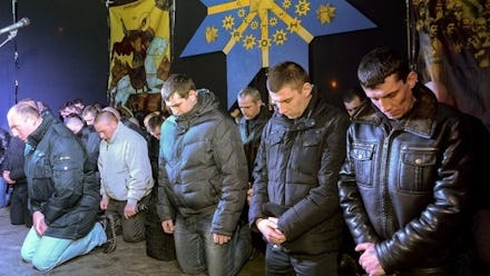 Ukraine's Police Get on Their Knees and Beg Angry Protesters for Forgiveness