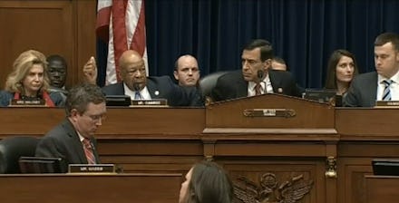 That led to this glorious exchange with Rep. Elijah Cummings (D-Md.) on Wednesday, as Issa gave a ridiculous conference in which apparently anyone who disagreed with him was not allowed to speak. Cummings had a procedural question, but first put in a jab at Issa, leading the latter to cut his mic: