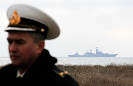 Although Russia's military intervention in Ukraine has not yet resulted in any casualties, it looks as though the country is playing the long game. On Wednesday a Ukrainian official said that Russian forces sank a submarine in the Crimean harbor, creating an obstacle to prevent Ukrainian ships from leaving the base. The bay has also been blocked by 10 Russian vessels, effectively trapping the Ukrainian ships inland.