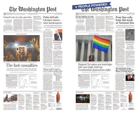 WaPo readers cared more about same-sex marriage than pot legalization, the budget plan or the crisis in Ukraine. But they kept wounded veterans on the front page and spotlighted a story on four lion cubs being born at the National Zoo — because baby animals are important.