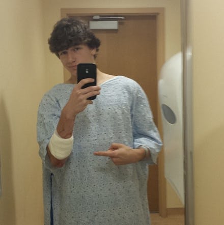 The motive remains unclear, but fortunately no one appears to have been killed in the assault. Witnesses say the stabber was tackled by assistant principal Sam King as well as senior Ian Griffith, who saw the suspect injure a school security guard. Many more could have been injured if not for the heroic actions of staff and students, including Nate Scimio, who alerted the entire school by activating the fire alarms after taking a wound to the arm defending two other students. Later in the day, Scimio posted this selfie from nearby Children's Hospital of Pittsburgh at UPMC: