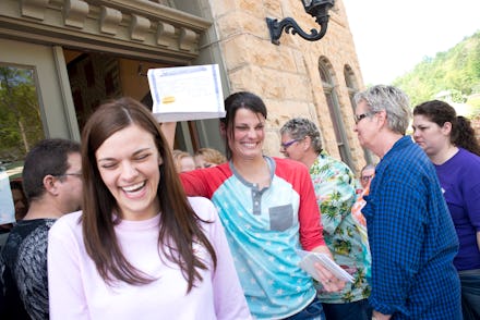 But despite the possible hiccups, same-sex couples stood in line on Saturday morning to apply for their marriage licenses. Jennifer Rambo, 26, exchanged vows with her partner Kristin Seaton, 27, in an impromptu ceremony outside the state court house, becoming the first same sex couple to marry in Arkansas.