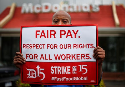 By banding together, fast food employees spanning the globe want better conditions to have a higher quality of life. The protest has spread through #FastFoodGlobal and #FastFood15 social media campaigns throughout the day. CEOs may not hear these workers' demands, but consumers might, and the dollar definitely has clout they'll appreciate.