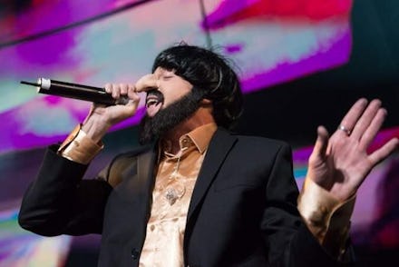 On Sunday, when Macklemore appeared on stage in his home city of Seattle, Wash. he was wearing a different sort of costume. Usually, when he raps his first major hit "Thrift Shop," he wears a leopard-print fur coat to mock hip-hop materialism. He appeared on stage dressed as anti-Semitic stereotype, rocking a dark wig, a long hooked prosthetic nose, and a fake beard to sing his song "Thrift Shop." He turned a song written to critique materialism into an offensive parody of stereotypical Jewish frugality, and revealed himself to be a completely clueless and insensitive.