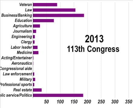 The news: Congress has a shrinking proportion of veterans and an increasing proportion of businessmen, bankers and — especially — career politicians joining its ranks. And there are still virtually no engineers, journalists or labor leaders.