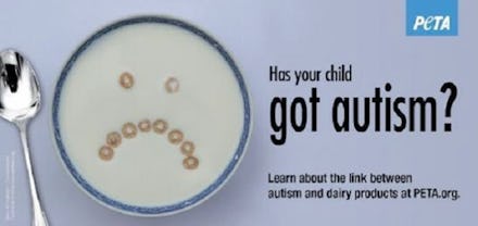 Still, the most offensive thing about this campaign is not the disingenuous pseudoscience — it's the fact that PETA is using parents' fear of autism as a ploy. "Don't use at least 1% of our population as a fear factor to urge people to your cause. Don't weight the already burdened backs of autistic people by characterizing them as devastating, screaming monsters whose only salvation lies in following your urgings to give up dairy," writes Forbes writer Emily Willingham.