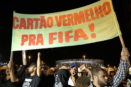 But it's not just directed at Brazil either. While most people have attacked the Brazilian government's handling of the World Cup, a fair share of the Twitter criticism has also been directed at FIFA, the international soccer organization behind the event.
