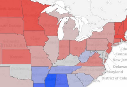 The data: Movoto found "The top eight states that demonstrated their reading best on Twitter were all in the North, split equally among the Northeast and a cluster of states like Minnesota, the Dakotas and Montana." According to Movoto, the results line up pretty well with the 2009 State of the States report, which measured educational metrics. A solid half of the eight identified by the Twitter metric were listed in the top 20% of states for eighth-grade reading proficiency.