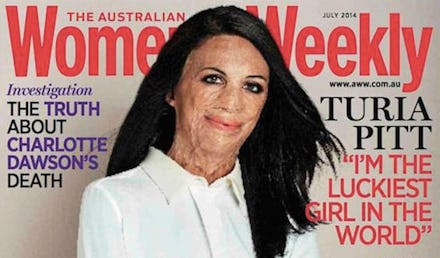 The magazine announced the selection of Pitt, who will be part of the magazine's annual Women of the Future scholarship awards, by calling her "quite simply one of the most impressive women you will ever hope to meet, Turia Pitt makes her debut this month on the cover of Australia's biggest-selling magazine."