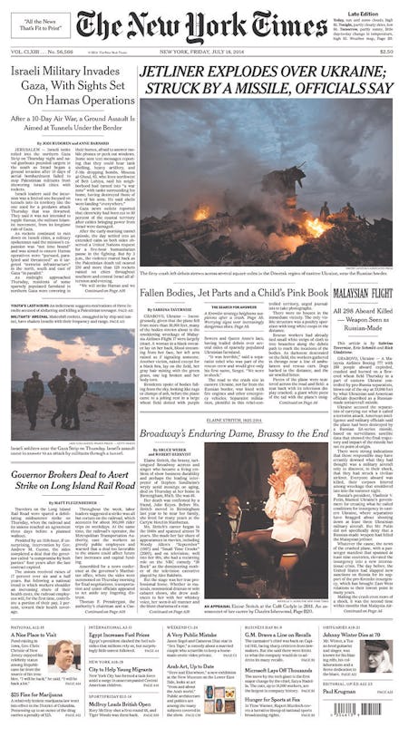 The Huffington Post reports that Times' Jerusalem bureau chief Jodi Rudoren and Beirut bureau chief Anne Barnard covered Israel's ground invasion of Gaza, while foreign correspondent Sabrina Tavernise reported from Ukraine on the Malaysian Airlines Flight 17 crash.