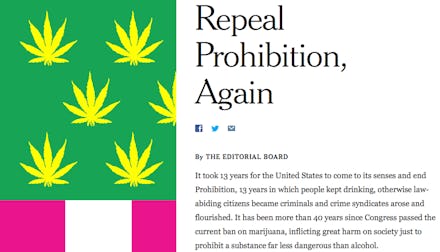 In an impassioned 500-word treatise, the Times editorial board compared modern cannabis bans to the ills wrought by Prohibition in the 1920s, concluding that, despite its logistical complexities, "the balance falls squarely on the side of national legalization… on nearly every level."