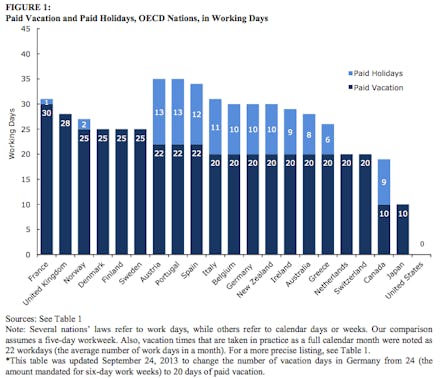 Why you should care: Business and political elites like to cry socialism at the mere mention of mandatory paid vacation time, but CEPR economist John Schmitt told CBS that U.S. policies mirrored Europe's until about the 1970s.