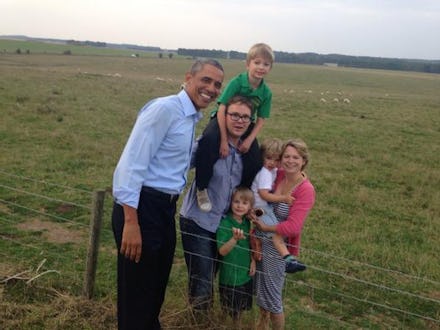 Meanwhile, a local family stopped by, hoping to catch a glimpse of the president. They got their wish and much more — Obama came over to chat and take photos with the kids.