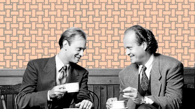Unlike recent satires of wealth and status, like HBO’s The White Lotus or Succession, which strike a darker tone and judge their characters far more harshly, Frasier was never interested in actually critiquing power structures, or making its audience actively uncomfortable. This largely has to do with genre expectations, as a mainstream sitcom is intended to entertain and attract a wide swath of advertisers. But it also reflects a period — the mid-1990s into the 2000s —when there was nothing more desirable than to be nouveau riche. If anything, the show was aimed at the same demographic as Niles and Frasier Crane, both trained psychiatrists, able to chuckle at their own snobbery through recognition of it in themselves.