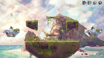 Brawlhalla is a platform-based fighting game with legitimately lovely stages that can host up to eight players, locally or online, at a time. It's a platform fighter, so the gameplay will appear similar to anyone who has played Nintendo's Super Smash Bros. series — in fact, it's practically the same. Each player controls a fighter and beats up other players to build their damage meter. The more an opponent is damaged, the further out they'll fly when hit. Build it up enough and launch them off-screen with a strong attack to defeat them.