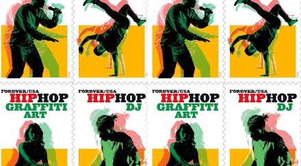 Finally, some good news for the cross-section of hip-hop and USPS fans: the post office is commemorating the genre with a new line of Forever stamps. The Postal Service has teamed up with the Bronx’s Universal Hip-Hop Museum to release a pane of 20 stamps that “features four elements of hip-hop: MCing (rapping), b-boying (break dancing), DJing and graffiti art.”