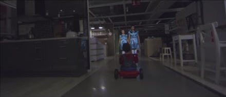 The clip comes out of Ikea Singapore, and it's a recreation of the movie's famous Big Wheel scene. An adorable tyke scurries around the Ikea showroom while lights flicker, skeletons sit down for a meal and fog floats in the background, only to be confronted by two terrifying twins in blue dresses. (Be sure to watch the clip all the way through, it's worth it.)