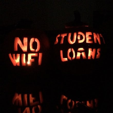The news: There are two things that scare college students more than term papers, and both of them found their way onto a pair of Jack O'Lanterns found on a Tumblr named "just a dream away" — and they'll make you scream louder than when you're startled at a haunted house.