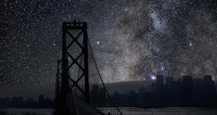 But by lending to each city's iconic monuments and architecture the starry skies of more isolated locations on the same latitude, French photographer Thierry Cohen has figured out a way to give major metropolises like New York, Paris and Tokyo the gift of a crystal clear sky.
