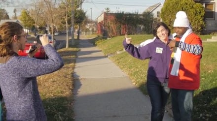 In one of the dumbest and most racially tone-deaf scandals in recent memory, Minneapolis Mayor Betsy Hodges has been accused of "posing with a convicted felon while flashing a known gang sign" because she and a black volunteer pointed at each other in a photo. And that's not an exaggeration — it's taken straight from the first sentence of the local ABC affiliate's coverage.