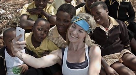 "Let's Save Africa!" is the satirical video's call to action. It opens with a truck stopping abruptly in a grassy area, ostensibly in Africa because Africa is just one big country. A white, blond girl jumps out with high-calorie food in hand, dressed in a white tank top, shorts and a stylish bandanna. She runs toward an unknown destination and does what every good volunteer does: starts hurling food at hungry mouths.