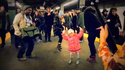 Cute, right? But eventually something even better happens when this little girl starts dancing — people join her. The result is a subway dance party for the ages.
