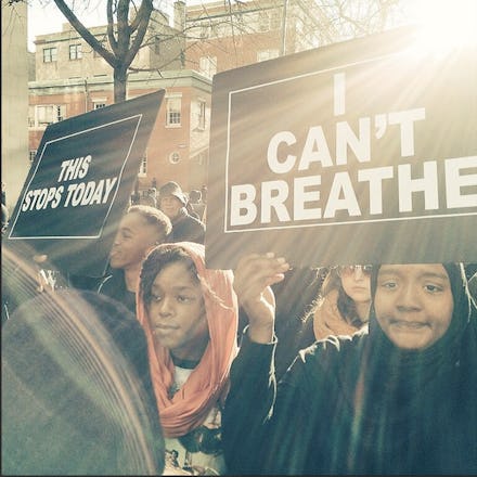 Contributing opinion writer at the Guardian Syreeta McFadden suggests white folks participate in marches, protests and events. "[Saturday] there's a rally of a bunch of poets at Washington Square Park [in New York]," she told me. She also suggests people check out the #BlackPoetsSpeakOut Tumblr for updates and videos.