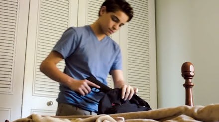 Why would you tell a child to bring a gun to school? Even if you come to grips with that remarkably asinine message, everything in this video shows the absolute wrong way to handle a firearm. (The kid keeps his finger on the trigger, for Christ's sake.) Loose backpacks are not safe ways to transport firearms. The gun appears to be loaded the whole time, including when the child slams it down on his teacher's desk.