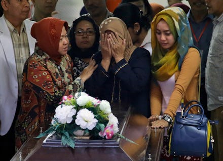 "[Hamid's] body, in a dark casket topped with flowers, was handed over to family members during a brief ceremony at a police hospital in Surabaya, the Indonesian city where the plane took off," writes the Associated Press. "A relative cried as she placed both hands against the polished wood. The coffin was then taken to a village and lowered into a muddy grave, following Muslim obligations requiring bodies to be buried quickly. An imam said a simple prayer as about 150 people gathered in the drizzling rain, and red flowers were sprinkled over the mound of wet dirt topped by a small white tombstone."