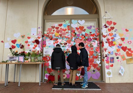 As reported by the Independent, thousands of Swedes gathered to condemn the attacks across the country under the banner "Don't touch my mosque" after the spate of anti-Muslim attacks, which included the scrawling of "Go home Muslim shit" in graffiti across the edifice of an Uppsala mosque wall, which had been targeted with a failed Molotov cocktail the night before. In response, hundreds of Uppsalans pasted cut-out hearts and messages of love onto the mosque's entrance before Friday prayers.