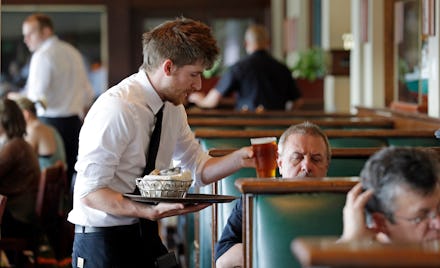Waiters and restaurant workers deserve better pay. The median hourly rate above the average wage in 2012 was $8.84 an hour. If the added tips don't raise their salary to the federally mandated $7.25 wage, the employer is supposed to fill in the gap. The U.S. Department of Labor found that 9,000 restaurants between 2010 and 2012 were in violation of wage law rules, so that's no guarantee either.